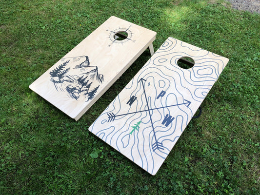 Pacific Northwest Themed Topo Map Cornhole Board Set