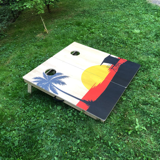 High quality UV printed graphic cornhole sets and traditional hand stained boards.