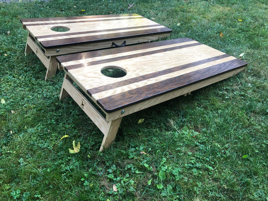 Dark Brown Stripe Traditional Cornhole Board Set